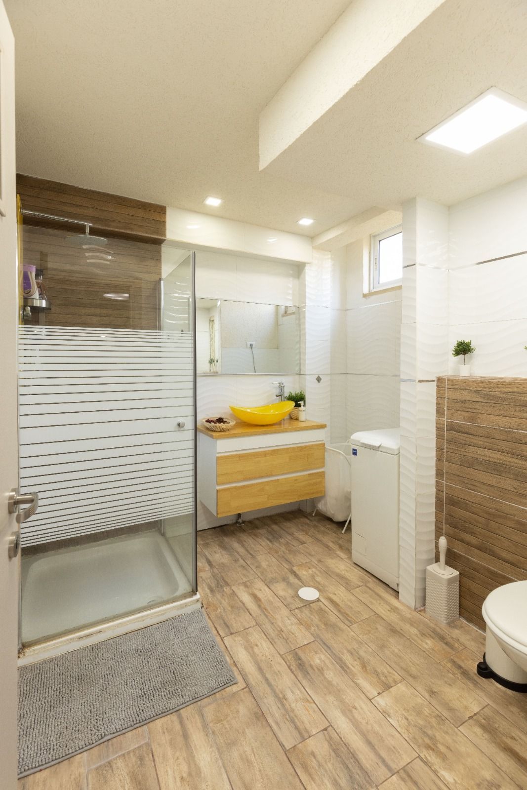 - חדר רחצה עם מגבות, שמפו ותחליב רחצה.